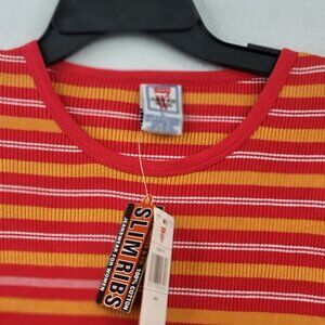 Rare Vintage 90s Levis Size Large Slim Ribs Women Striped Tee USA Deadstock New