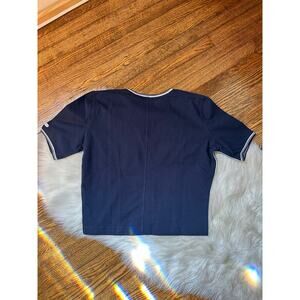 Rare Vintage 90s Nike Challenge Court Cropped Navy Blue Short Sleeve T Shirt, M