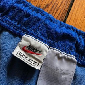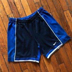 Rare Vintage 90s Nike White Tag Men's Navy Blue Royal Blue White Stripe Embroidered Swoosh Above Knee Athletic Sweatpants Shorts.