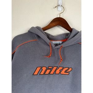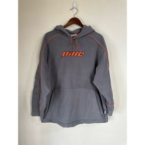 Rare Vintage 90s Y2K Nike Fleece Gray Orange Center Spellout Hoodie Sweatshirt