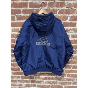 Rare Vintage ADIDAS Spell Out Striped Full Zip Hooded Jacket 90s Navy L