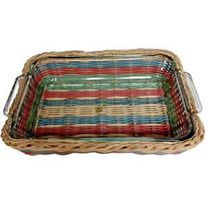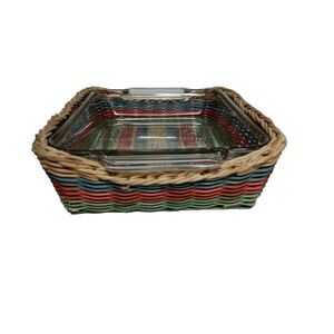 Rare Vintage Anchor Hocking Casserole Baking Dish with Rattan Basket Pastel