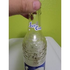 Rare Vintage Antique Soda Pop Glass Bottle Sun Crest Blue Label Clear Atlanta