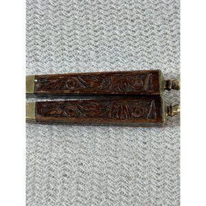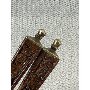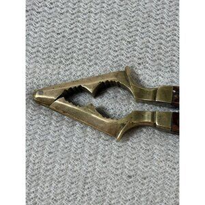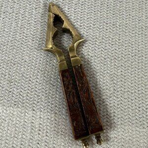 Rare Vintage BRASS Nut Cracker Ornate CARVED Wooden Handles Made in KASHMIR MCM