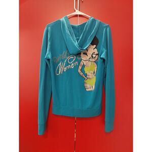 Rare Vintage Betty Boop Wild Women Turquoise Hoody Zipper Sweatshirt