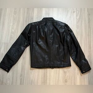 Rare Vintage Bonjour 80s Black Leather Moto Jacket Cropped Shoulder Pads Sz 5/6
