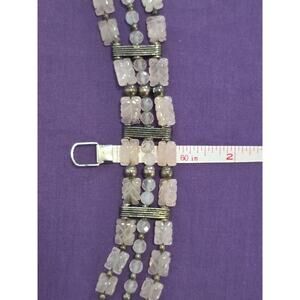 Rare Vintage Bracelet Sterling Silver 925 And Carved Rose Quartz Layered Beads