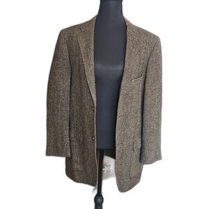 Rare Vintage Brown Herringbone Wool Blazer W/ Classic 2-Button Up Lucas Chicago