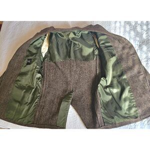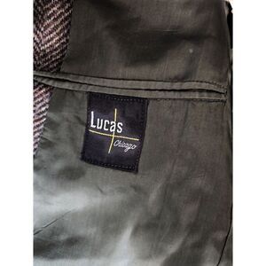 Measurements: 21in P2P. 31in Collar to bottom hem. 17in Button-Button. 24in Arm. No size tag. Measurements indicate it is a men's size large. Small hole on the back of the blazer. Elevate your wardrobe with this timeless vintage blazer from Lucas Chicago. This piece features a rich brown herringbone wool blend that exudes classic sophistication. The structured silhouette includes a notched lapel, two-button front closure, and multiple front pockets for a refined finish. Perfect for fall layering, business casual looks, or vintage-inspired styling.