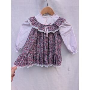 Rare Vintage Bryan Lace Ruffle Floral Dress Toddler size 3t lavender bergundy