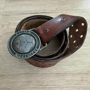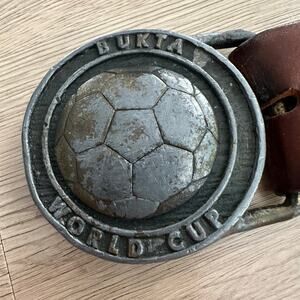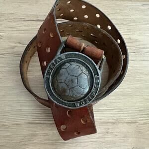 Rare Vintage Bukta World Cup Buckle Brown Perforated Leather Belt