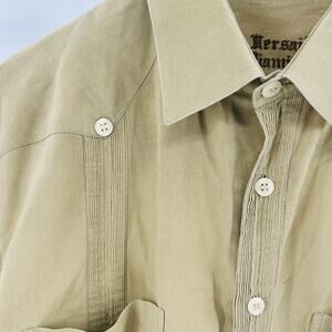 Rare Vintage Cafe Versailles Miami Beige Tan Long Sleeve Guayabera Shirt