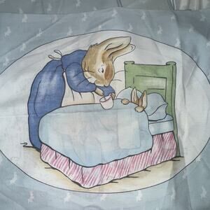 Vintage Royal Cannon Peter Rabbit Beatrix Potter FW & Company 1987 Blue Twin Sheet Set. Fitted sheet, flat sheet and pillowcase.