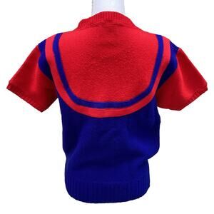 Rare Vintage Cheerleading Sweater Pepster Hall Red Blue Short Sleeve Knit Small