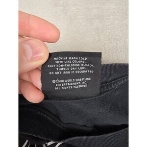 This product is a rare vintage Chris Jericho Y2J Jericoholic 2000 proof WWE 3XL T-shirt. The shirt features an all-over print with various wrestling characters including John Cena, Roman Reigns, and Eddie Guerrero. Made of black cotton with a crew neck and short sleeves, this graphic print shirt is a must-have for fans of wrestling and vintage memorabilia. Perfect for collectors or fans of WWE and other wrestling promotions, this shirt captures the nostalgia and excitement of the 2000s wrestling era.