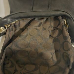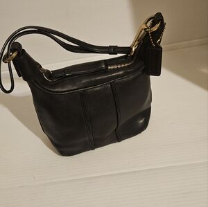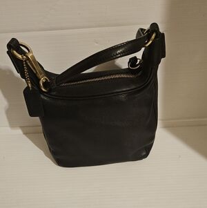 Questions? Leave a comment below! This vintage Coach Amanda shoulder bag is a must-have for any classic fashion lover. The black leather exterior features a solid pattern and a zip closure, while the gold hardware adds a touch of elegance. The bag measures 7 inches in width, 6 inches in height, and 4 inches in depth, making it the perfect size for everyday use. The interior lining is made of brown fabric, and the bag comes with a 22-inch leather strap drop. The Coach Amanda bag is a timeless piece that will never go out of style, making it the perfect addition to any wardrobe.