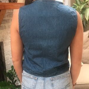 Vintage quilted Cottagecore denim vest, one of a kind piece, 3 buttons down the front, 100% cotton, in good used condition.