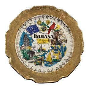 Rare Vintage Crest-O-Gold 9" INDIANA Collectors Plate Hoosier History 22K Gold