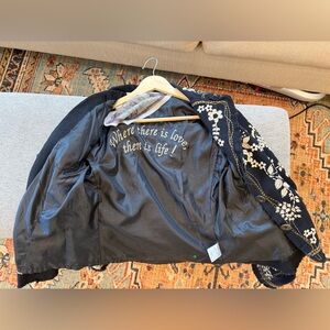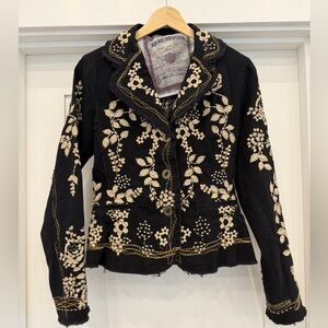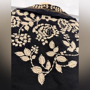 Fully embroidered jacket. Extremely well made. Gorgeous jacket and embroidery! Lined inside. Button up front. Raw hems.