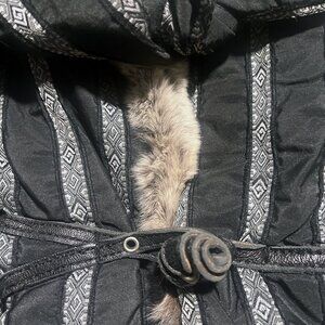 Up for sale is a luxurious Daniela Vitali Raccoon jacket with curled leather toggles and deep pockets. This fur hood will keep out the fiercest winds!