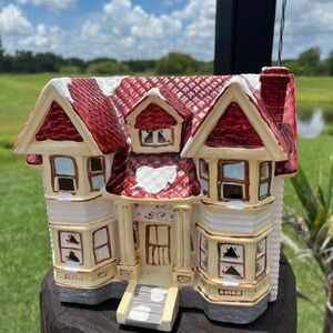 The product is a rare vintage Department 56 Lincoln Park duplex house from the year 1986. This collectible holiday decor is made of porcelain and ceramic materials, perfect for adding a nostalgic touch to your Christmas decor. The unmodified piece is a classic addition to any holiday collection, showcasing the charm and craftsmanship of Department 56 pieces from the past.