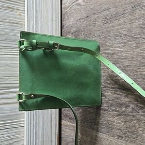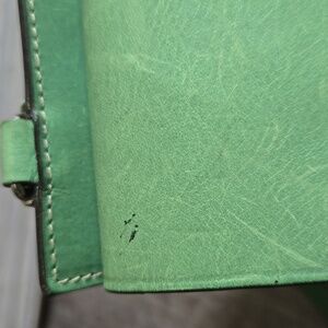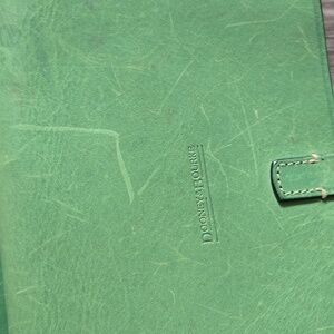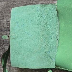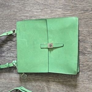 This is a pre-owned vintage Dooney & Bourke Green Alto Collection Crossbody Bag (I2-150557) with signs of wear like scratches and pen marks. This is a beautiful rare find with lots of life left in it.