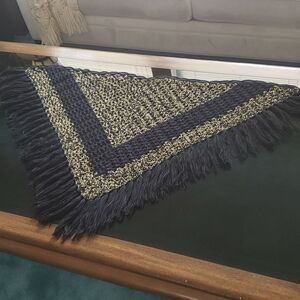 Rare Vintage Elegant Black & Gold Knitted Shawl