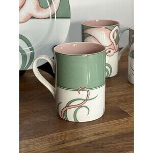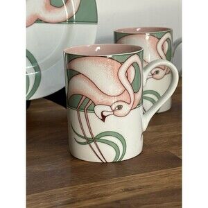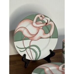 Very rare and stunning Fitz & Floyd Flamingo Road porcelain dessert plates and mugs