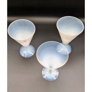 Rare Vintage Fry Foval Pearlware Wine Glasses. Set Of 3. EUC