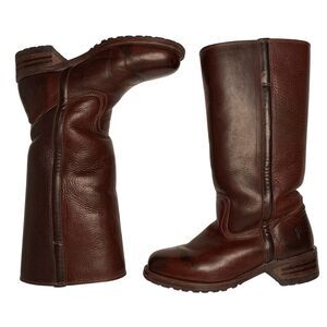 Rare! Vintage Frye Campus Shearling Tall Leather Pull On Boots Square Toe 7.5