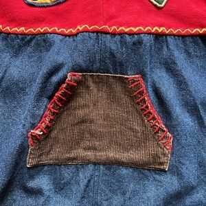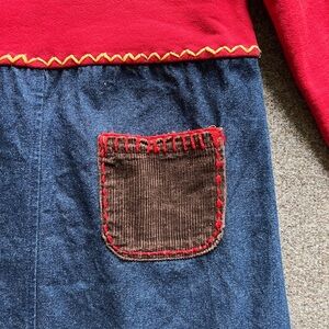Rare Vintage Girls 1/4 Zip Denim Sweatshirt Patch Dress Corduroy Stitched Pocket