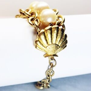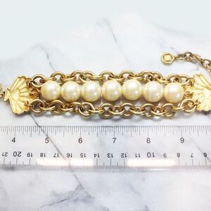 ⚜️ Rare Vintage Givenchy Bijoux Pearl & Gold Seashell Link Adjustable Bracelet ✨