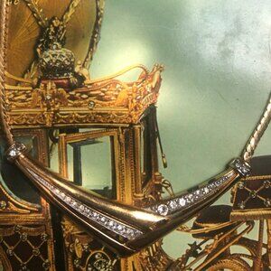 Rare Vintage Gold Art Deco Style Monet Costume Jewelry Herringbone like Necklace