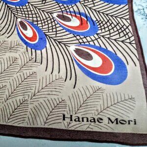 Rare Vintage Hanae Mori Peacock Square Silk Scarf