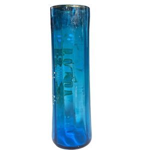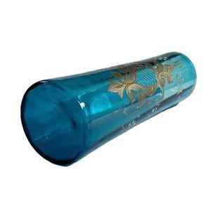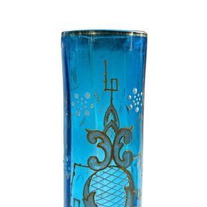 Rare Vintage Hand Painted Blue and Gold Enameled Glass Bud Vase