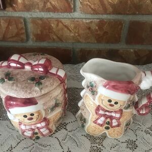 Rare Vintage Hand Painted Gingerbread Man Christmas Sugar/Creamer