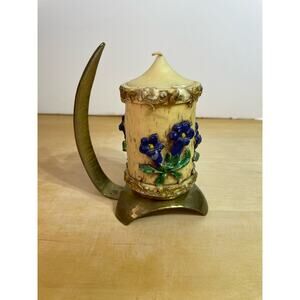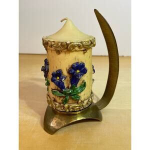 Rare Vintage Handarbeit Brass Swivel Candleholder Handmade Floral Wax Candle
