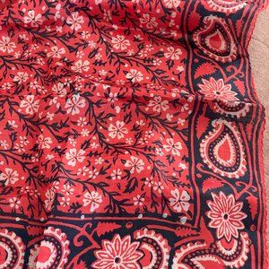 Rare Vintage Indian 100% Silk Scarf Botanical Floral Paisley Square 32 x 34 VTG