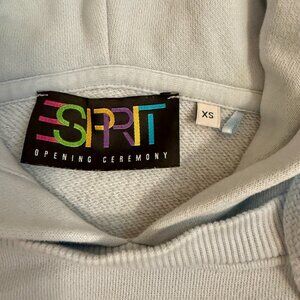 Very rare and unique 80s-inspired XS (extra small) baby blue hoodie is from the 2017 Esprit and Open Ceremony Collaboration.