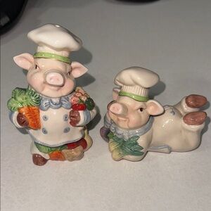 Rare Vintage K&B Chef Pigs Salt and Pepper Shakers EUC Kitschy Kitchen Piggies