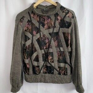 Vintage KOOS Van Den Akker New York Metallic Lace Overly Button Sweater Size S