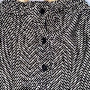 Herringbone print throughout, elastic waist and wrist, 3 button up neck closure