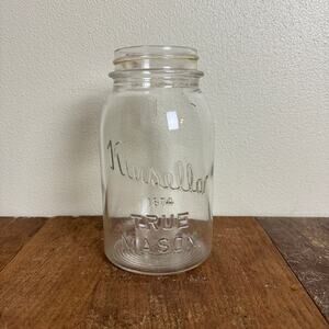 Rare Vintage Kinsella 1874 TRUE MASON Clear Glass Canning Jar Quart Size
