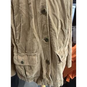 The Rare Vintage LL Bean Plaid Lined Corduroy Canvas Chore Jacket from the 90s is a stylish and unique piece for any unisex adult wardrobe. Made of durable cotton corduroy in a classic brown color, this jacket features a button closure, long sleeves, and is lined for added warmth. With a vintage 90s theme and the renowned L.L. Bean brand, this basic jacket offers a timeless style that is perfect for everyday wear.