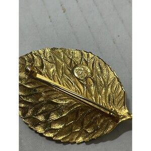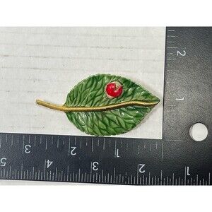 Rare Vintage Ladybug Leaf Enamel Pin Brooch Signed Original by Robert Goldtone