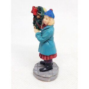 Rare Vintage Lemax Lady Holding Christmas Reef In Snow Figurine Shelf Sitter