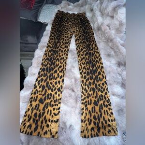 Rare Vintage Leonard Paris Leopard Print Silk wide Leg Pants, 42/6US