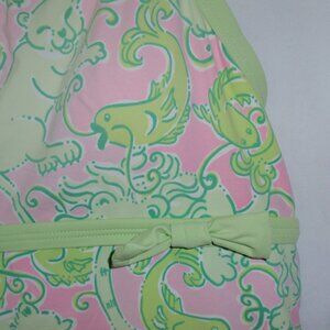 Rare Vintage Lilly Pulitzer One-Piece swimsuit. 2 layers, underlayer has tan mesh, and bottoms, top layer is A-line with empire waist and a bow on the side