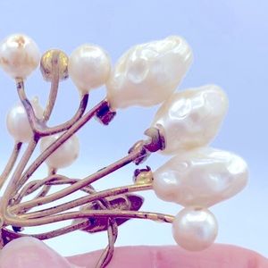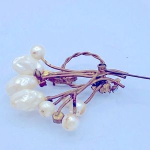 Rare vintage signed made in Austria gold tone with faux pearls and AB crystal brooch/pin. This is a beautiful piece and measures 2 1/2” long by 2” wide. Very old brooch has a vintage c clasp. The metal looks like brass. There maybe one of the smaller ab crystals might be missing, but still in good vintage condition. Would be a beautiful piece to add to your vintage jewelry collection. AB Crystals Rare Vintage Signed Austria Gold Tone Faux Pearls Brooch Pin Beautiful Collection Collectible