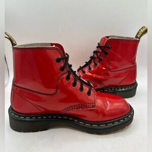 Rare Vintage Made in England Dr. Martens Red Patent Leather Boots 6 EYE Size 7